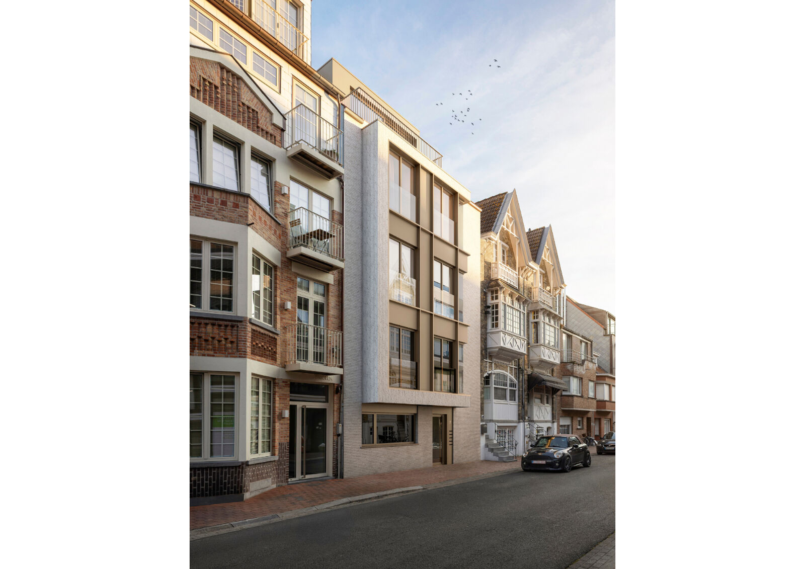 The new construction project is located at the charming and centrally located Gulden Vliesstraat 7 in Knokke, one of the most sought-after and prestigious neighborhoods on the Belgian coast. Situated near the bustling center of Knokke, this location offers excellent access to shops, restaurants, art galleries, and the beach. The region is known for its exclusive atmosphere, natural beauty, and high-quality lifestyle, making it the ideal place for those seeking comfort, luxury, and proximity to all amenities.