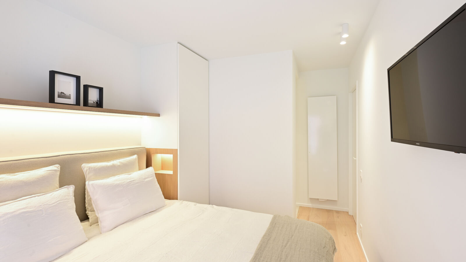Indeling: Inkom, lichtrijk leefruimte met zijdelings zeezicht, terrasje vooraan, hyper moderne en volledig ingerichte keuken, gasten toilet, vestiaire, drie ruime slaapkamers voorzien van alle luxe zoals tv en ingemaakte kasten met elk een eigen badkamer en praktisch terras achteraan met twee opberg ruimtes.