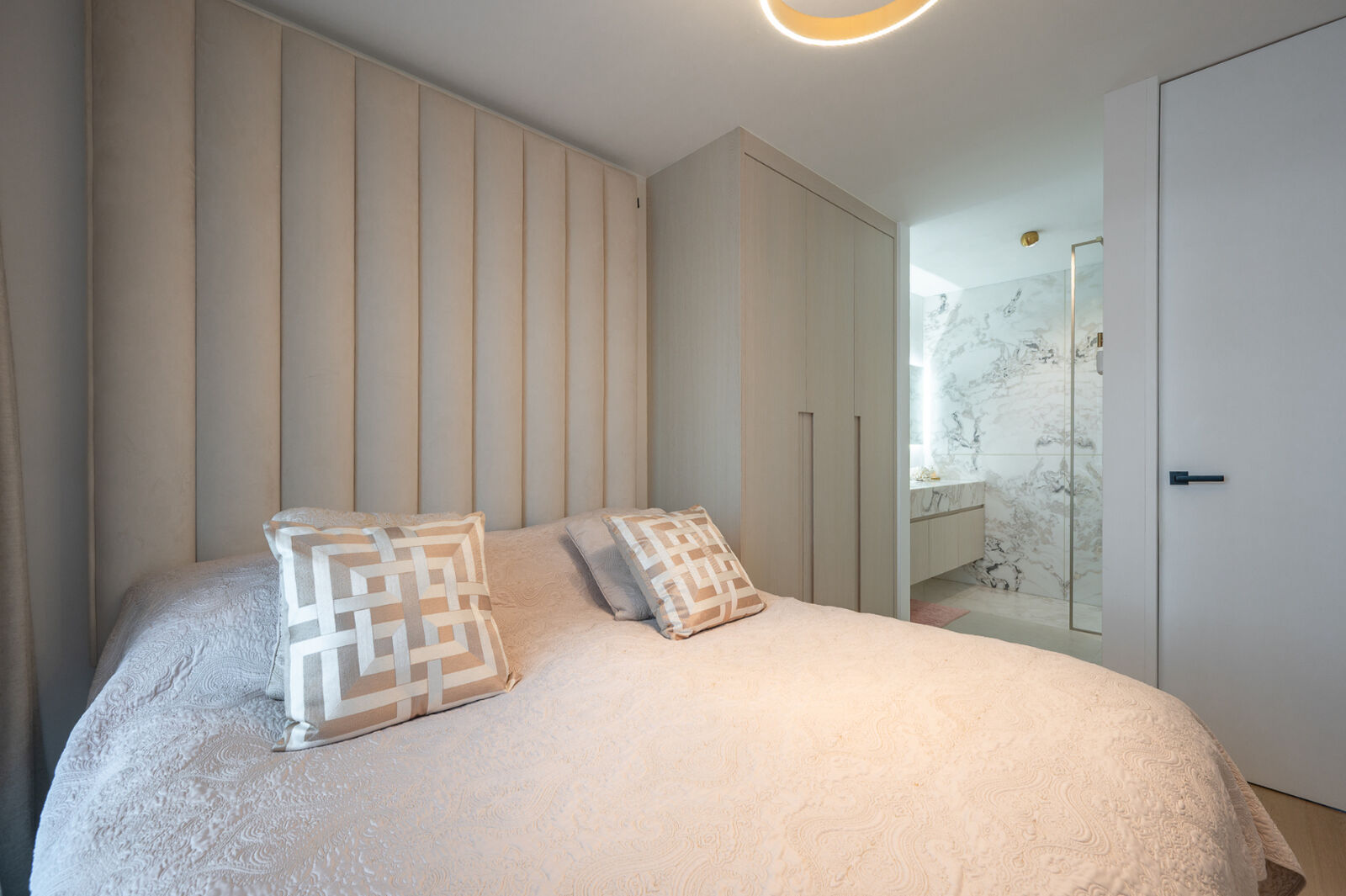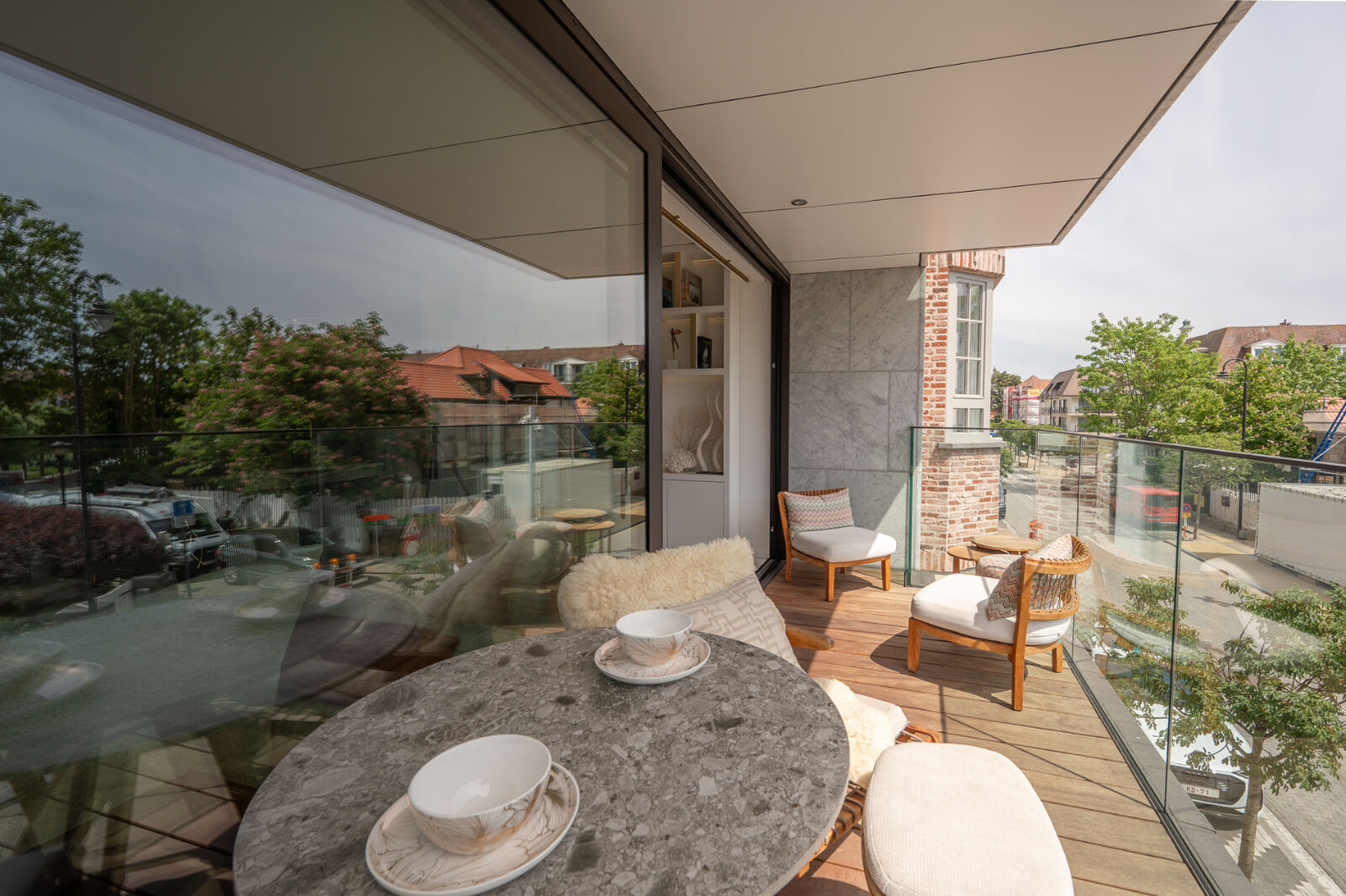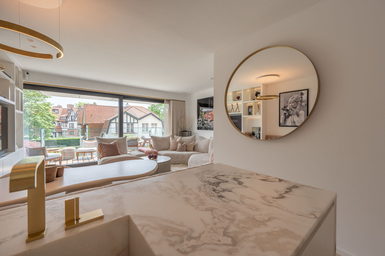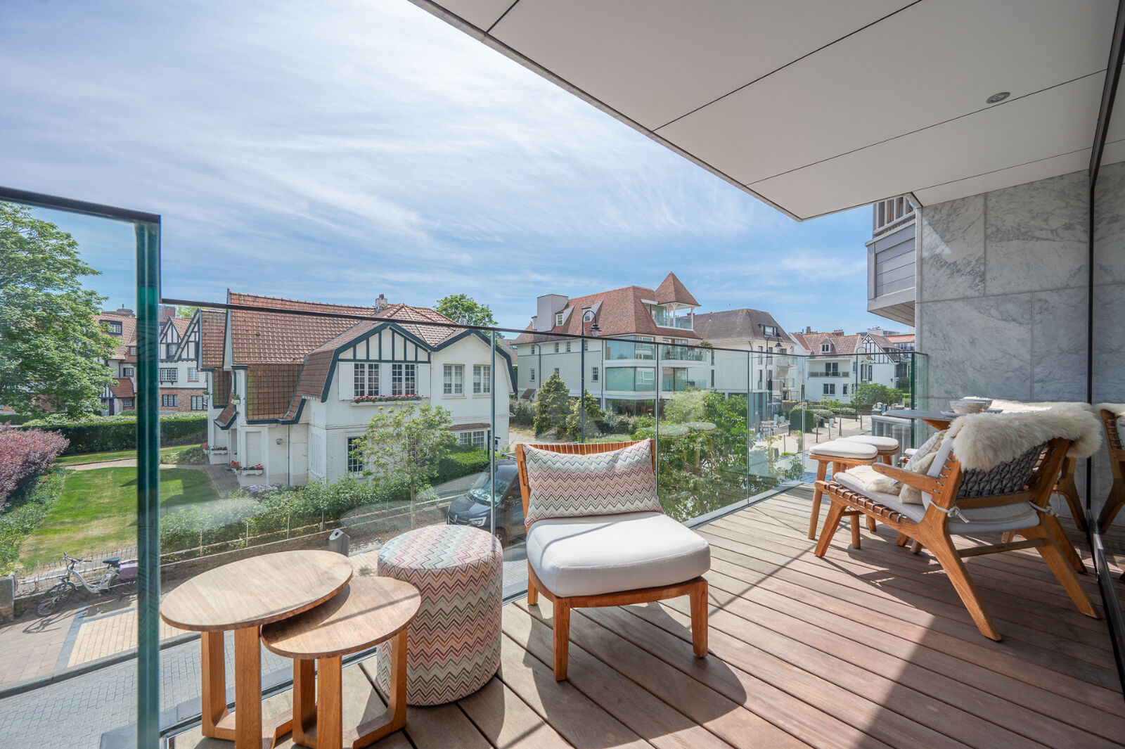 Appartement neuf aux finitions luxueuses de 2 chambres à coucher avec une terrasse spacieuse orientée au sud avec vue sur la verdure, situé dans la prestigieuse résidence "Pogany" sur l'avenue du littoral au Zoute. Vente sous le régime du droit de vente.