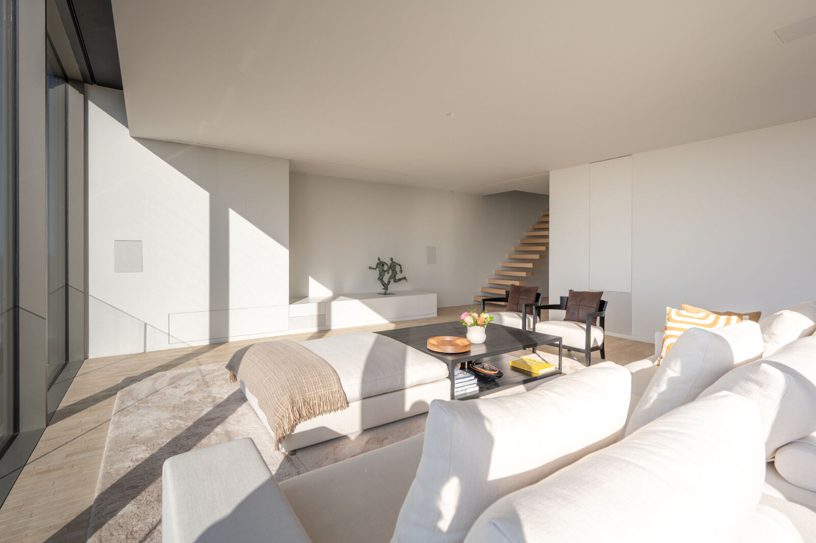 De volledige ondergrondse verdieping (-1), met plaats voor drie wagens, behoort eveneens exclusief tot dit appartement.