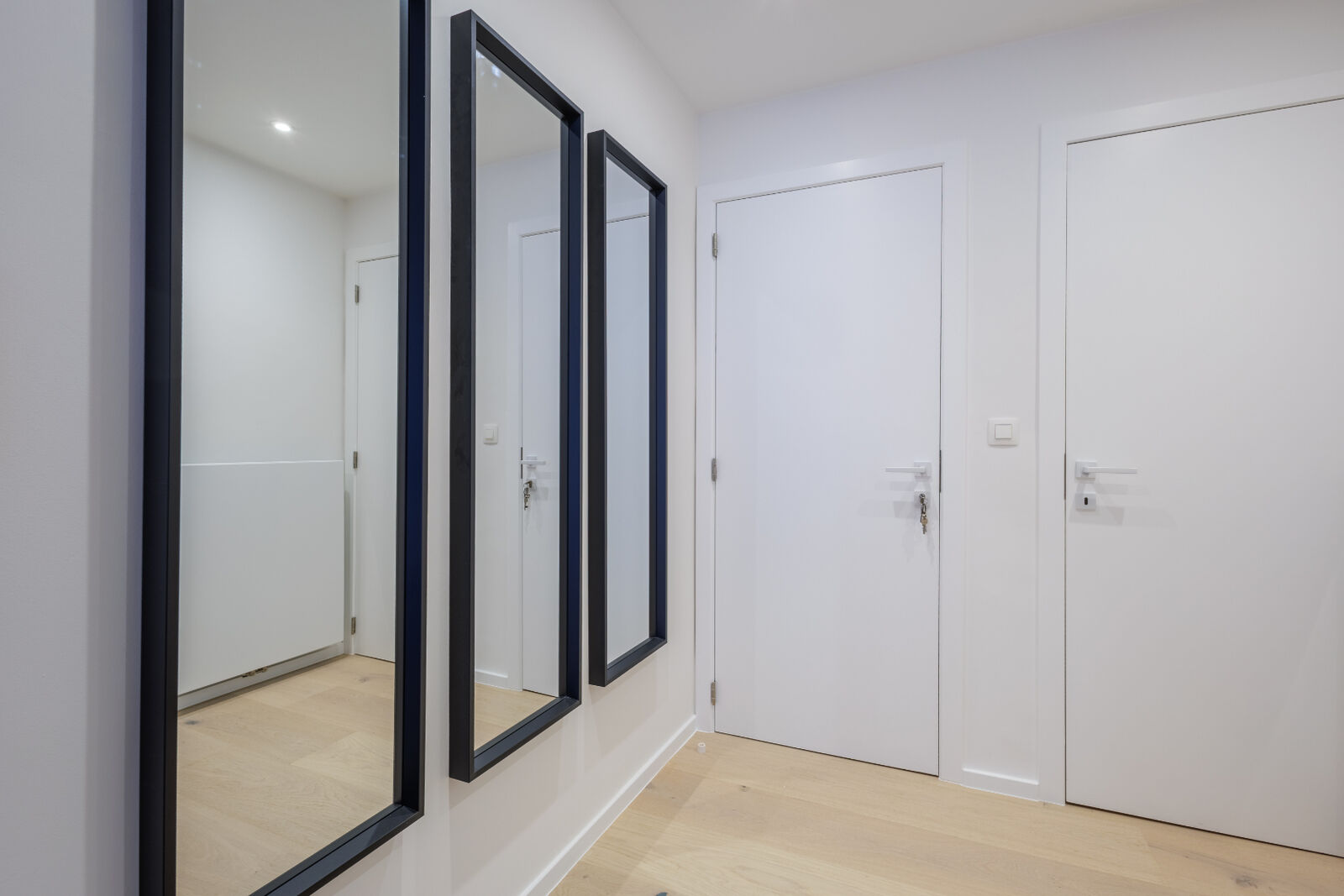 Via de ruime inkomhal met vestiaire en gastentoilet bevindt zich het slaapgedeelte, dat bestaat uit twee comfortabele slaapkamers, elk met eigen sanitaire voorzieningen. De hoofdslaapkamer beschikt over een aansluitende badkamer met ligbad en toilet, terwijl de tweede slaapkamer toegang heeft tot een aparte douchekamer.