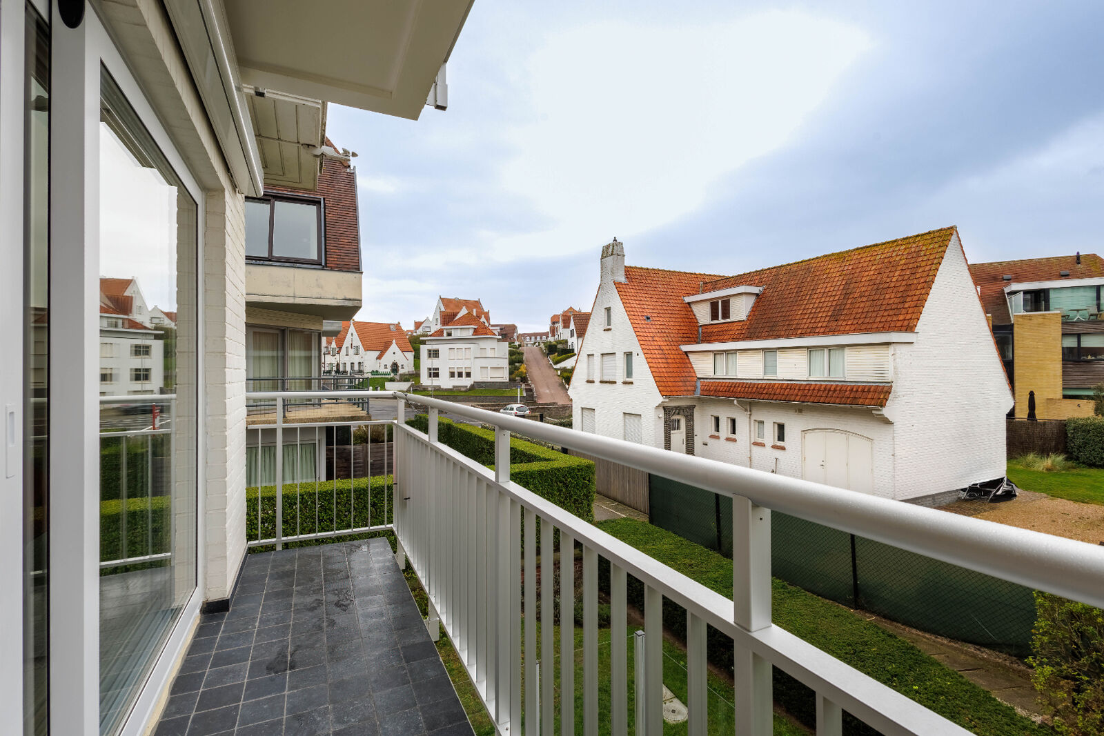 Zuidgericht hoekappartement tussen duinen en zee in villaresidentie met open zicht