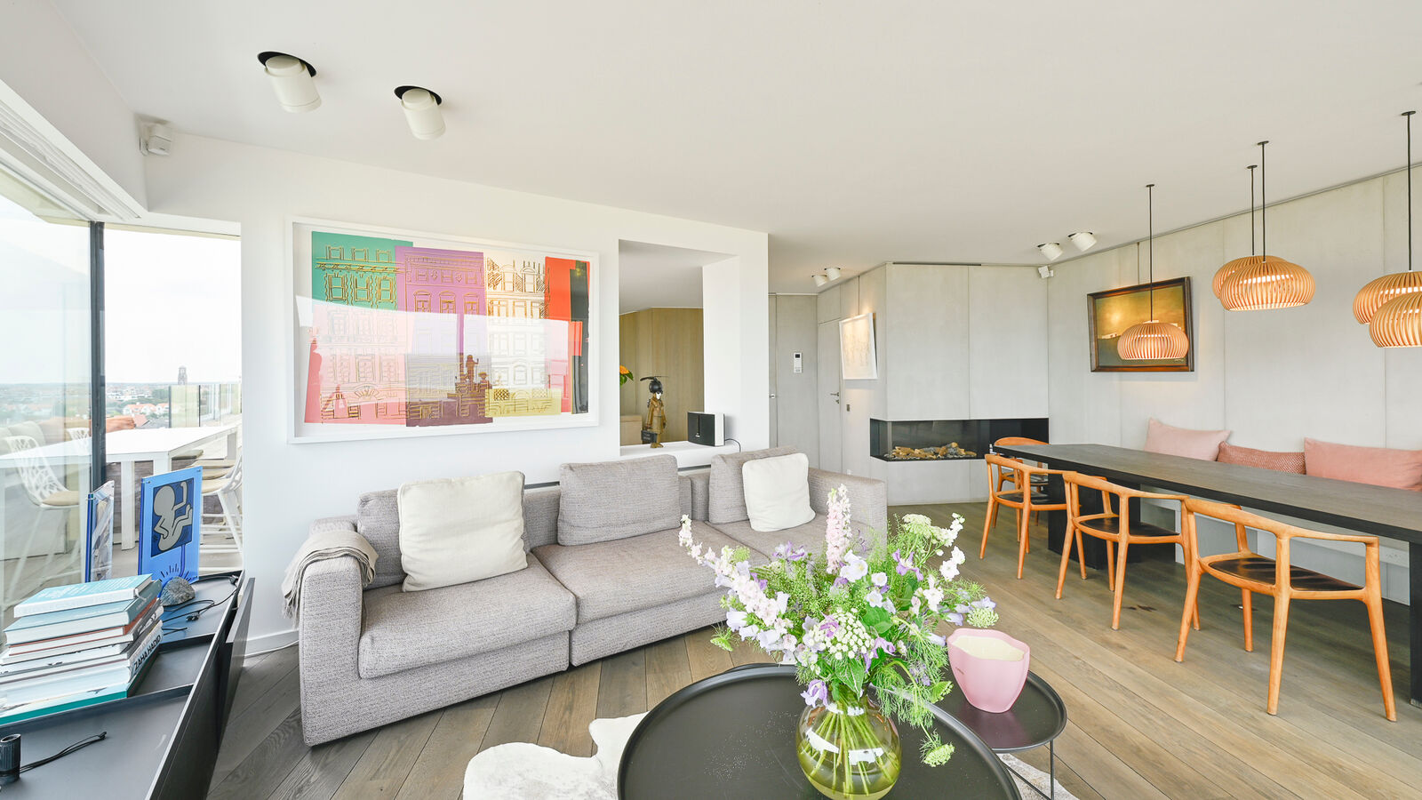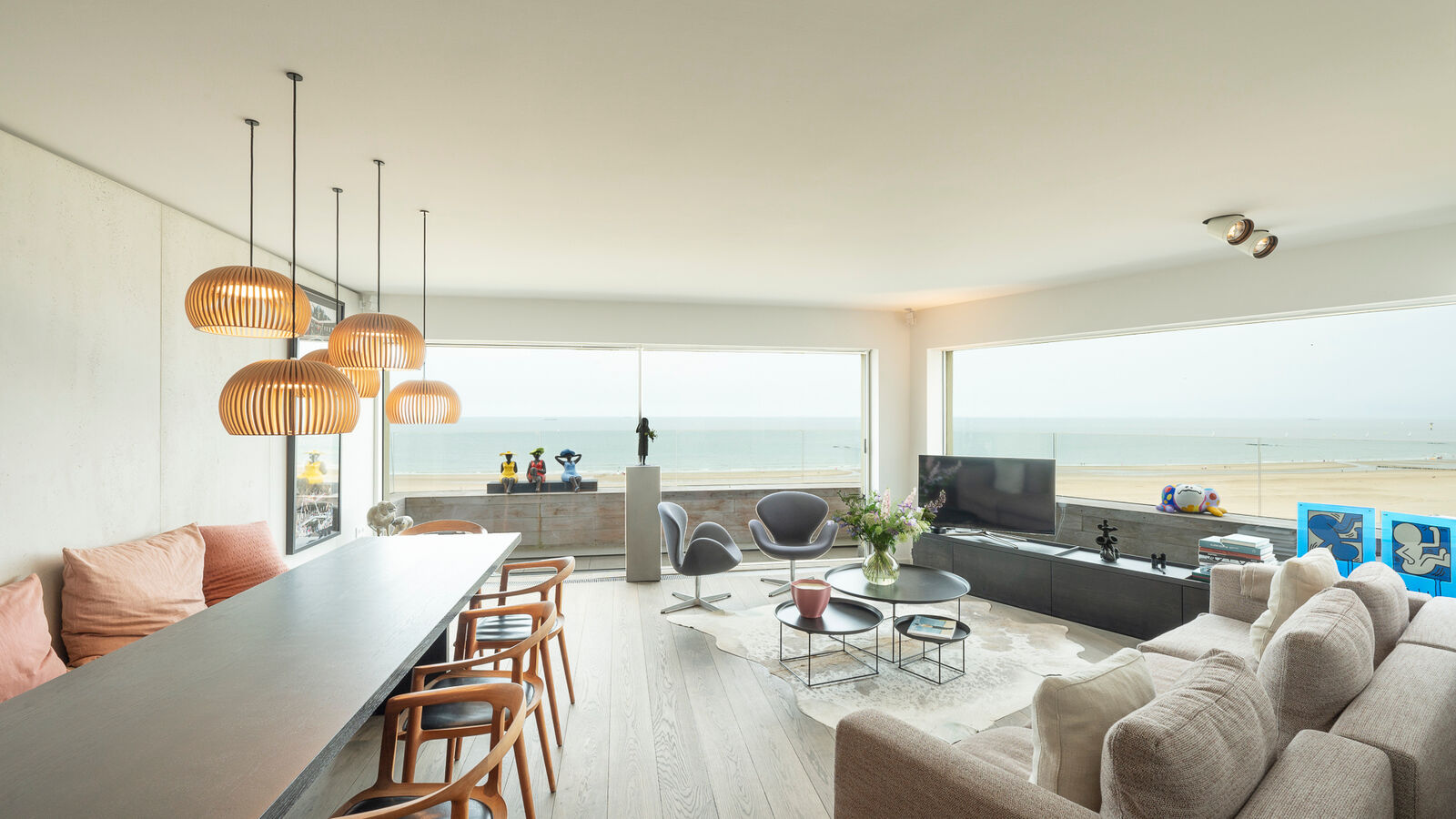 Uitzonderlijk ruim hoekappartement met een panoramisch zeezicht.