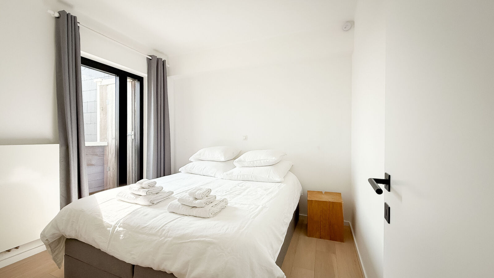 De indeling omvat een lichtrijke leefruimte dankzij de vele raampartijen, een open keuken, één ruime slaapkamer en een moderne badkamer. Het hoekappartement geniet van maximale lichtinval en biedt een panoramisch zicht over het centrum van Knokke.